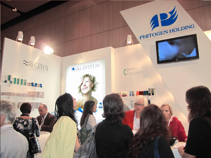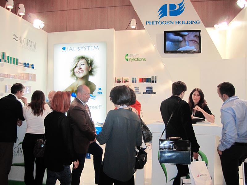La stessa curiosità per la BIORIVOLUMETRIA si è riscontrata allo stand condiviso da Regenyal Laboratories e Phitogen Holding. I referenti delle aziende hanno saputo coinvolgere centinaia di medici e operatori del settore, molto colpiti dalle iniziative costantemente proposte come corsi, promozioni, servizi e, soprattutto, dalla scientificità col quale vengono realizzati prodotti dal preziosissimo marchio made in Italy, riconosciuto in tutto il mondo. L’attenzione e il rigore seguito nel processo produttivo hanno fatto sì che gli iniettivi Regenyal Idea e Ial–System ottenessero la qualificazione di Green Injections, garanzia di sicurezza e naturalezza.